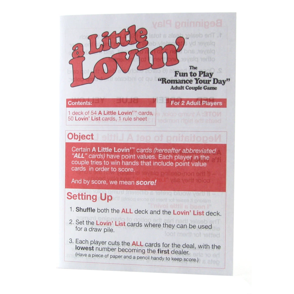 A playful game for couples that brings both romance and sex to the table (or bed, as the case may be), A Little Lovin’ is a fantastic way to warm up for a night of passion. This game vaguely resembles euchre, with a trump color of ‘A Little Lovin’ card determining number of points won, these can be played on or discarded by your playmate. When either player has reached 50 points, they’ll pick a Lovin’ List card, which spells out sexy scenarios and situations. Detailed instructions are included, along with 54 Little Lovin Cards and 50 Lovin List cards.