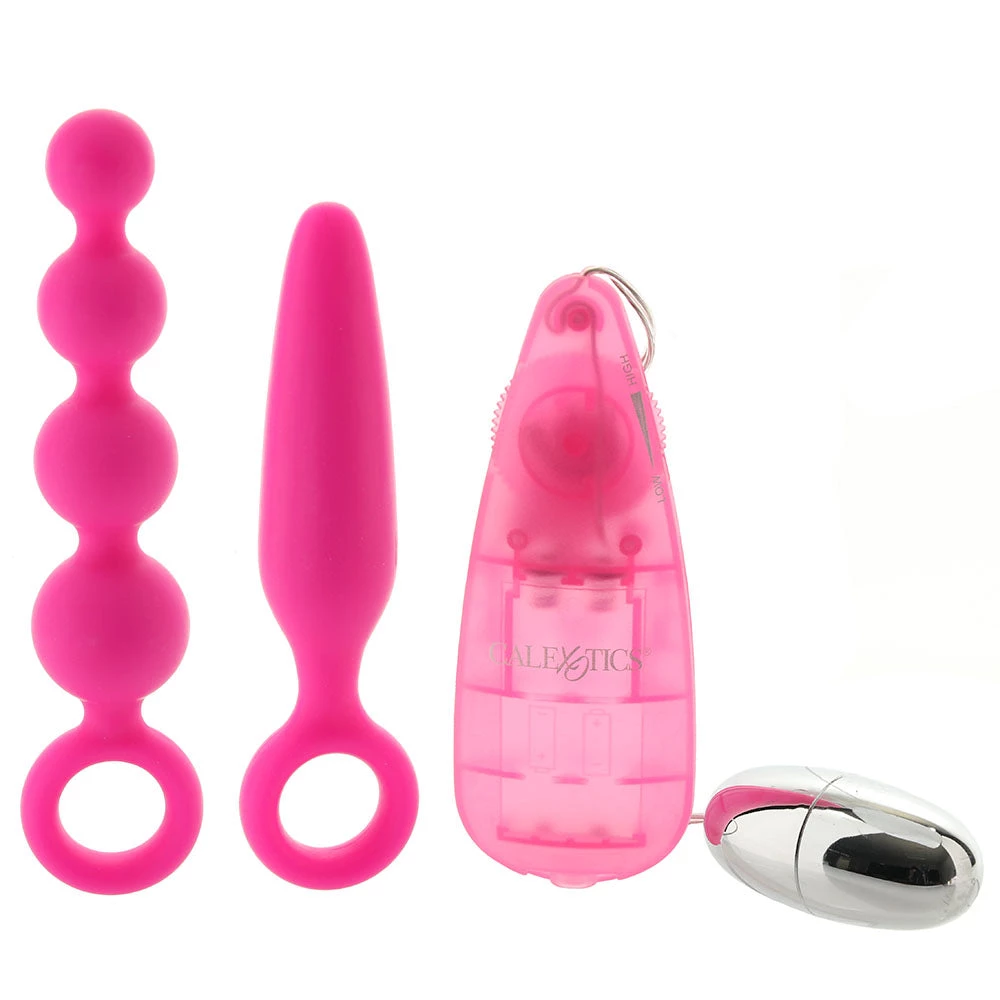 A sleek, booty-pleasing combo from CalExotics, the Booty Call Vibro Kit covers all the butt-play basics, from bumpy beads and a silky classic plug to a versatile multi-speed vibe that ties everything together.Â