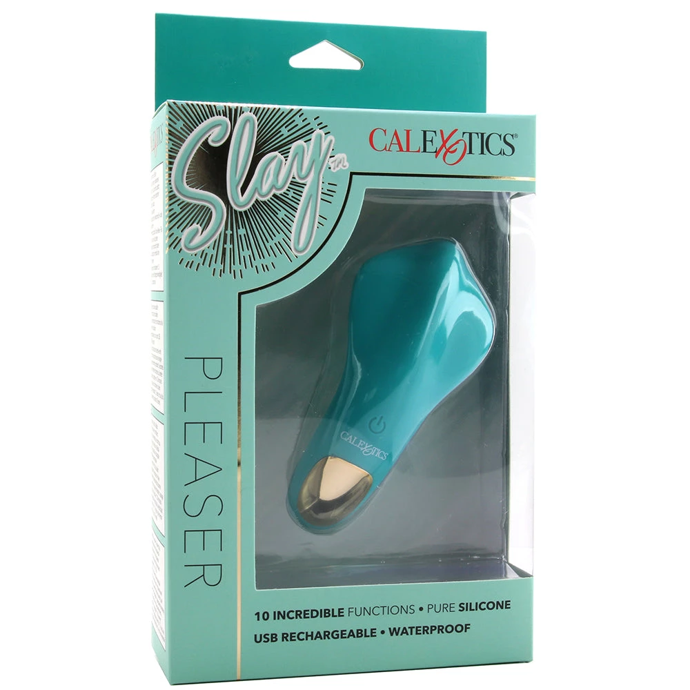 Featuring a silky palm-sized shape specially contoured to fit comfortably in your (or your playmate’s) hand, the Slay collection’s Pleaser vibe designed to seek, find and please sweet spots in almost any position and during just about any act.
