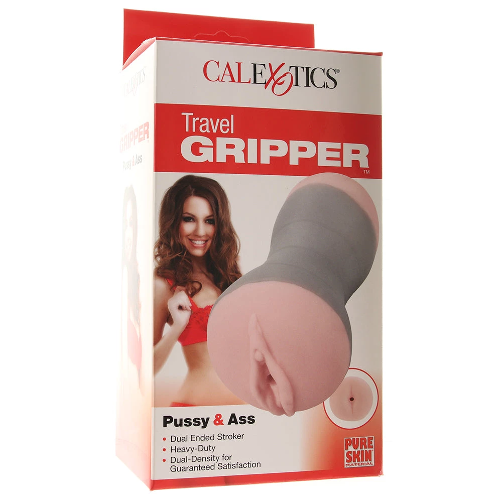 A portable version of the best-selling original, the Travel Gripper Pussy & Ass fits easily into days and nights on the go. A pliable outer faux casing holds a soft, extra realistic double sided sleeve with a ready entrance topping each.Â