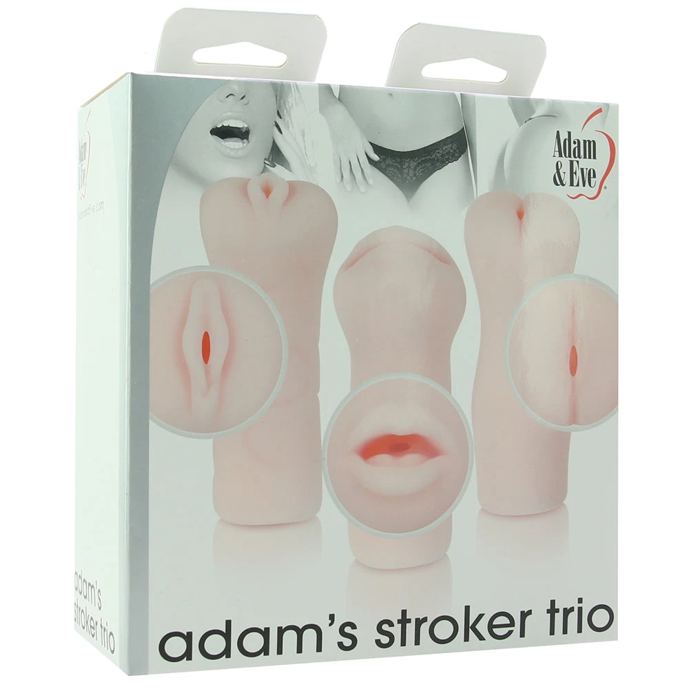 Pull out the pussy, ass, or mouth version of these super soft, ultra stretchy sleeves, depending on what you or your partner happens to be craving. Each closed-ended sleeve features a totally unique inner texture, with raised bumps, ribs and swirls that massage, cling, grip and release as you stroke away. Closed off at the back end, each stroker in Adam’s Trio feels nice and snug.Â