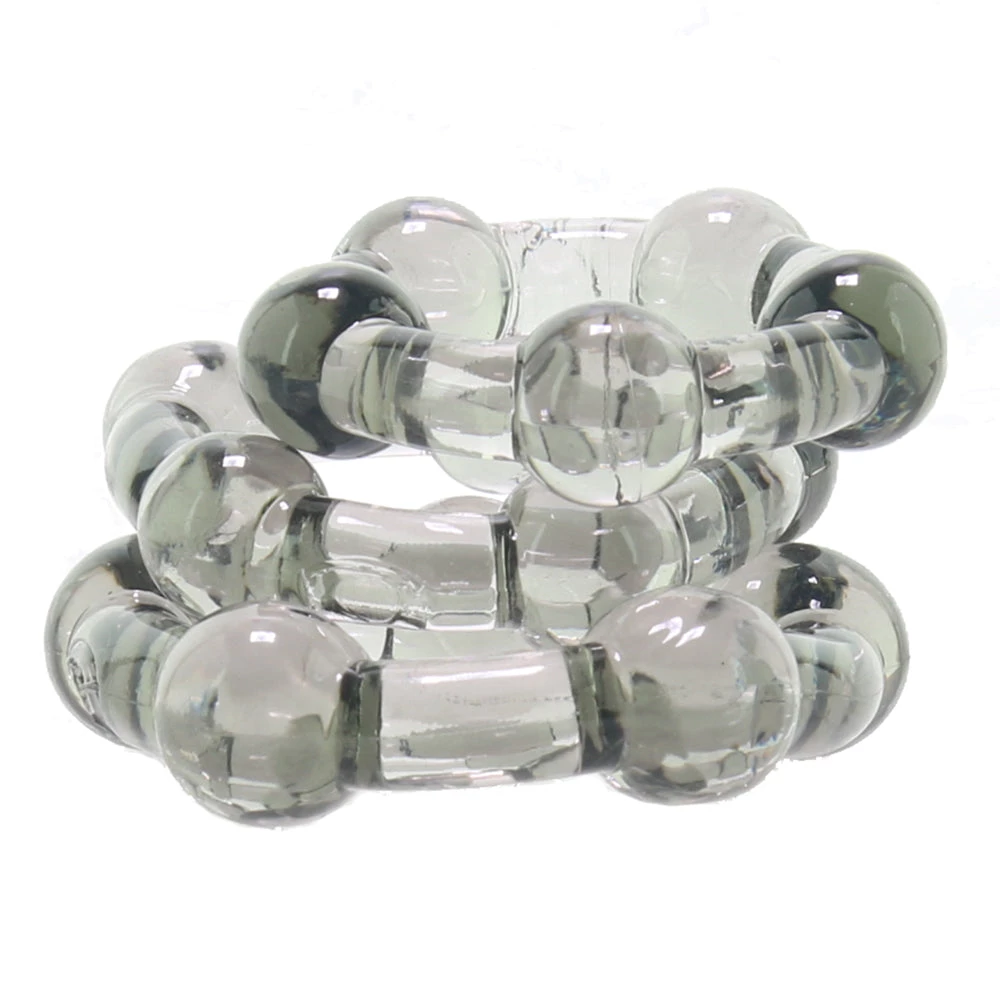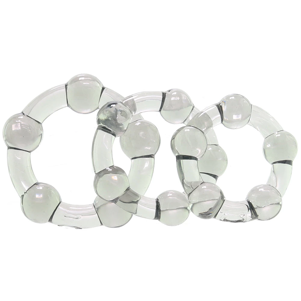 Loop the Small, Medium or Large beaded ring around the shaft of your/their penis, stretch it around cock and balls together, or try it out as a ball separate/stretcher. You can use all three at once or individually, whatever fits the scene. The sexy constriction can help maintain erection and slow down a too-fast finish, which, as we can probably all agree, is a win/win for everyone involved.