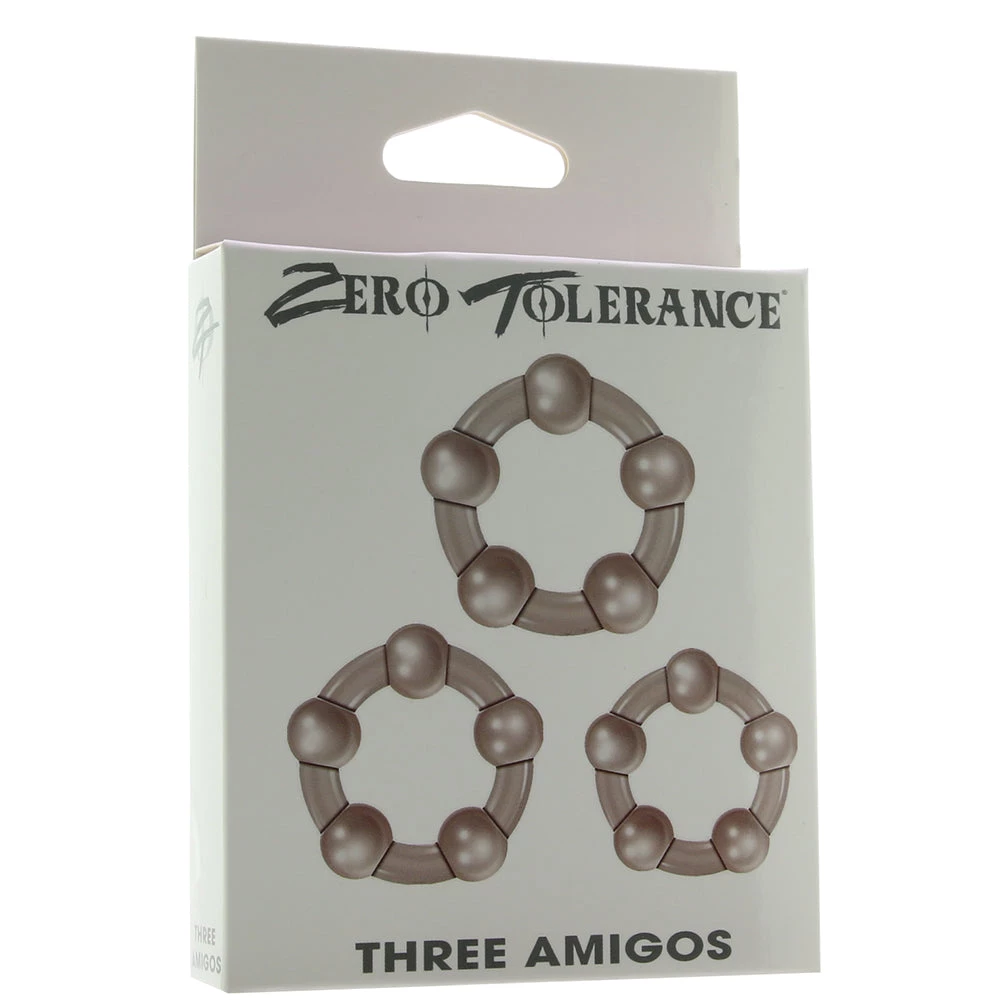 We’re probably not going out on too far (or hard!) a limb when we say that when it comes to the good things in life, three is better than one. Three is exactly what you and your partner will get from the Three Amigos Cock Ring Set from Zero Tolerance. To be exact, you’ll be the proud owner(s) of a trio of perfect stretchy cock rings offering up lots of versatility, erection support and pleasure enhancement.