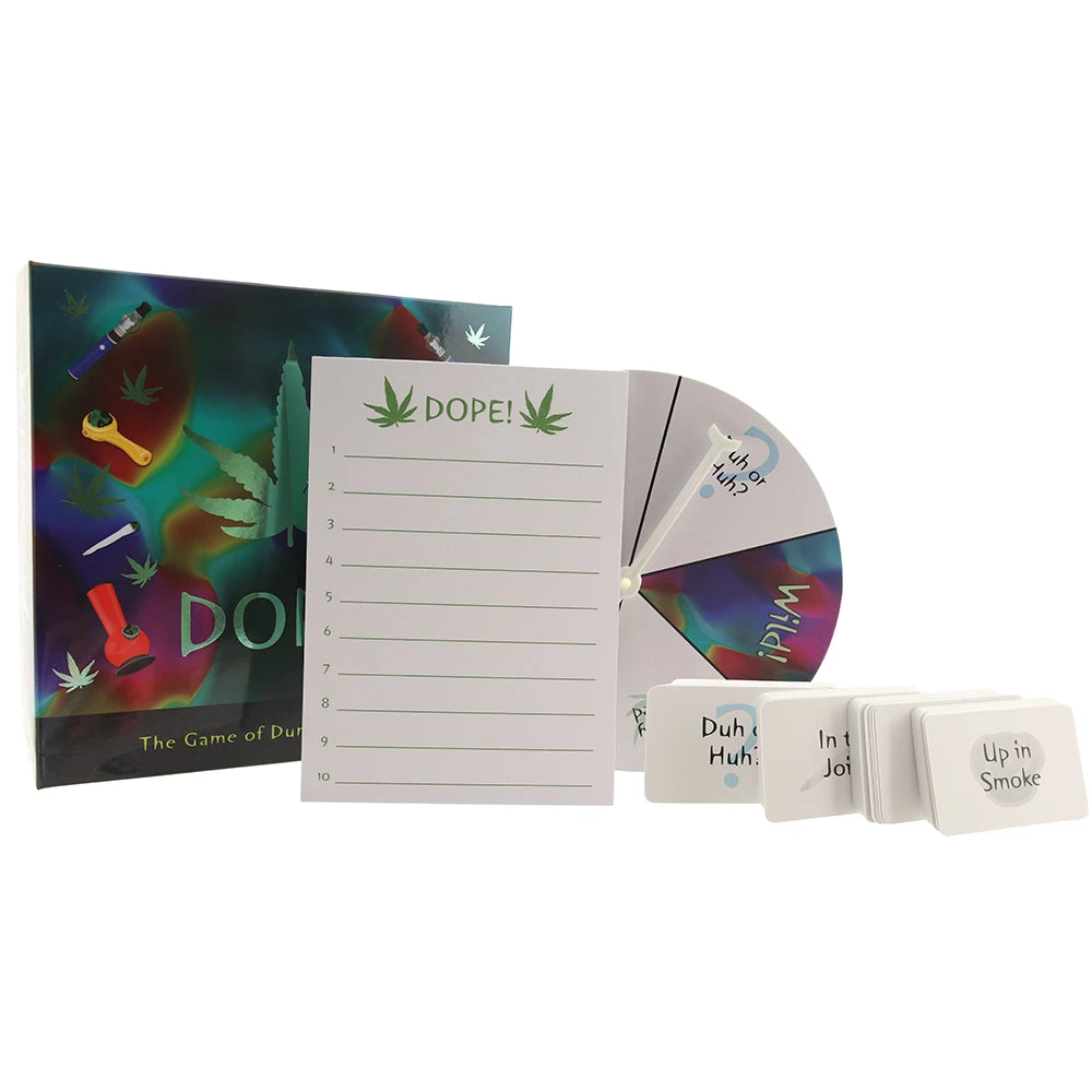Want to find out way too many ridiculous things about your friends? Have a smoke (if it’s legal where you are, of course!) and spin the dial you’ll find inside your Dope! The Game of Dumb Questions box.
