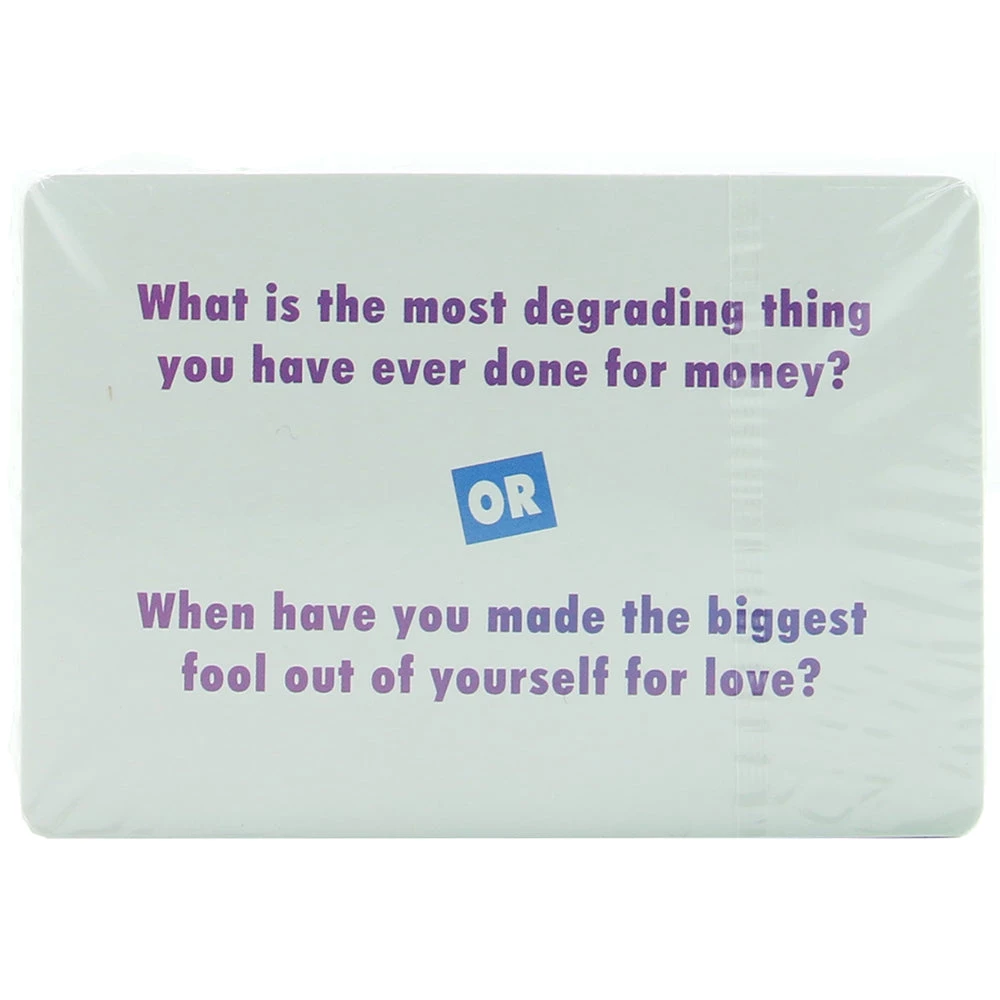 Players will take turns asking questions like ‘What happened on the sluttiest day of your life’ and so on. The person asking the question accepts the first two volunteered answers while the rest of the group votes on their favorite.Â