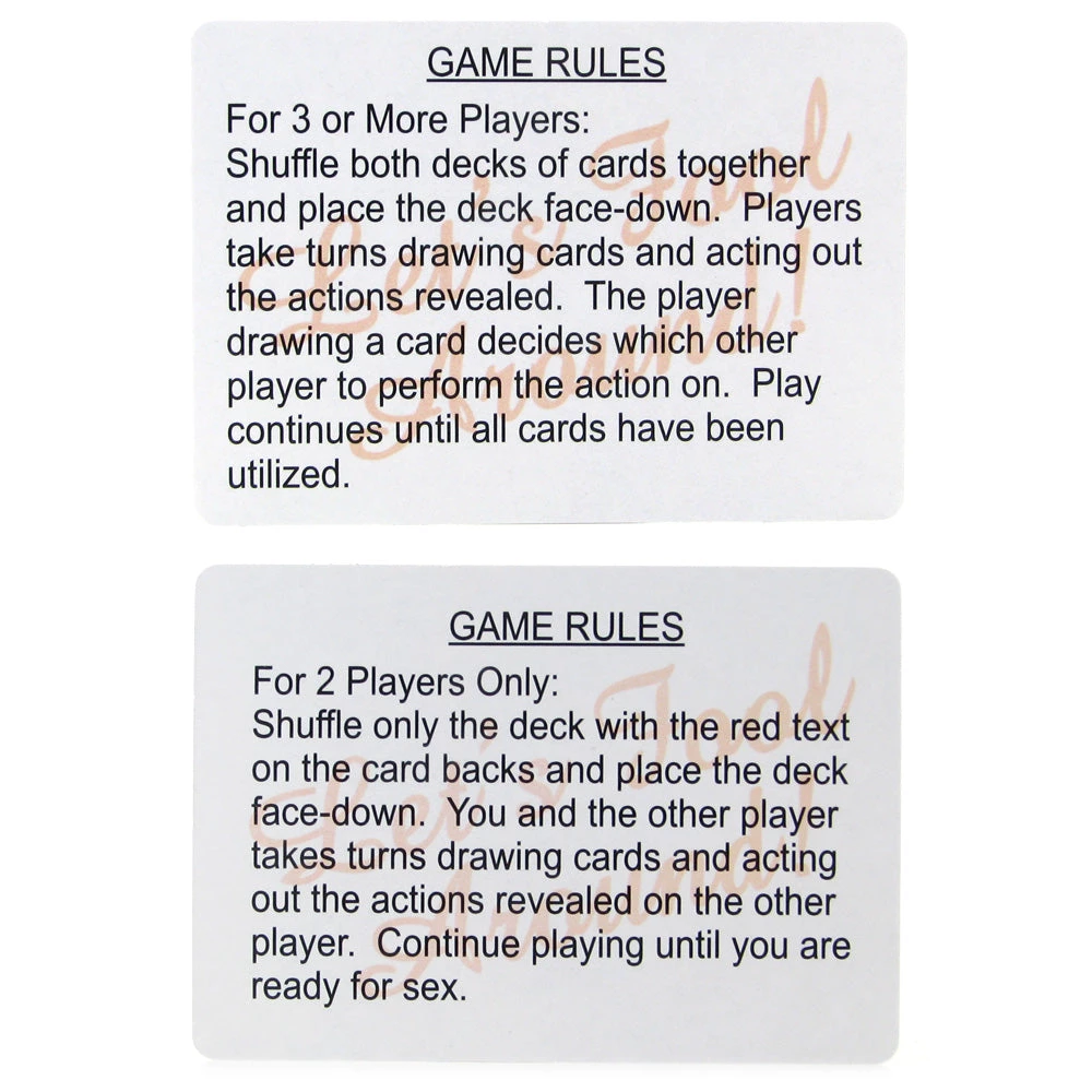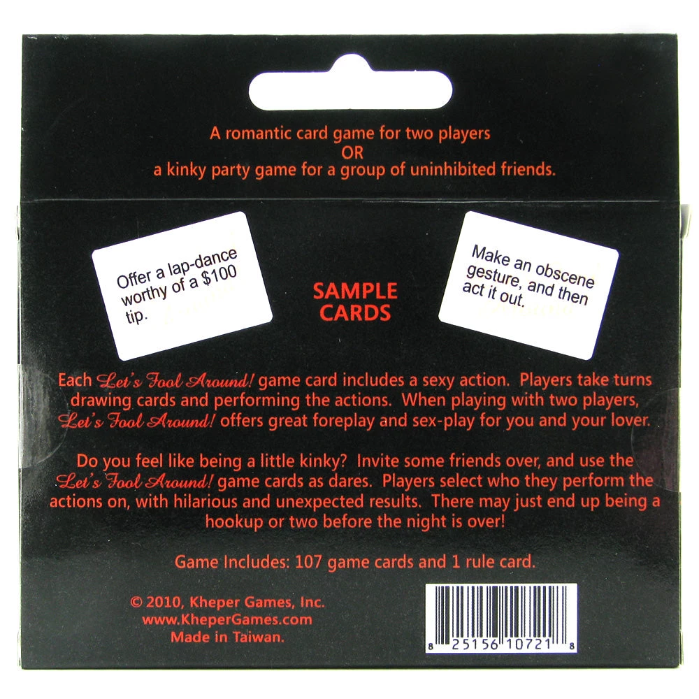 A versatile, ultra sexy card game for two players or a group of daring friends, the Lets Fool Around deck contains 107 cards, each with a naughty, scandalous or downright dirty action spelled out. Whether you draw ‘kiss the brunette that you think is the sexiest’, or ‘dance dirty for the player that you think its the sexiest’ from the orange group cards, or ‘act out your favorite rated R movie scene’ or ‘kiss and lick your favorite erogenous zone’ from the one-on-one deck, sexy time and most likely a hook up or two is guaranteed.