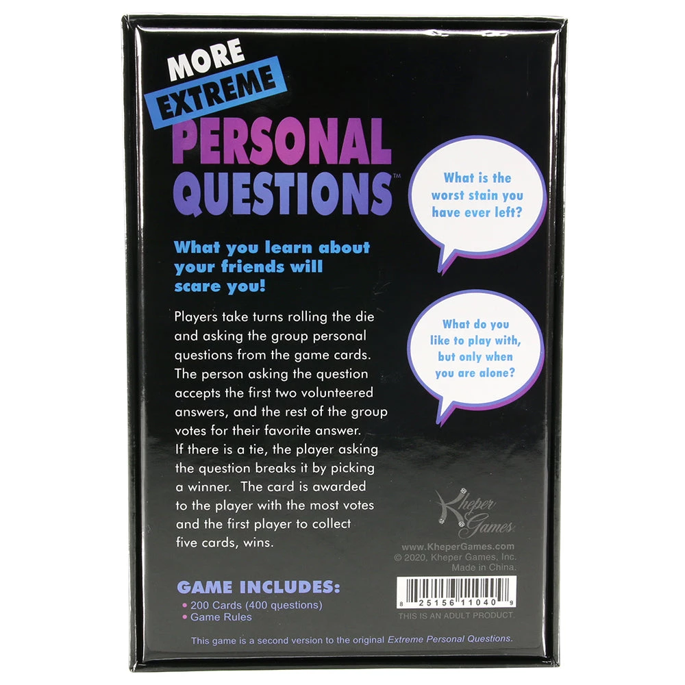 A sometimes raunchy, sometimes tame, but always hilarious party activity perfect for friend groups or groups of people you’re okay with knowing wayyyy too much about, More Extreme Personal Questions is a fairly uncivilized fun loving game of get-to-know-you.