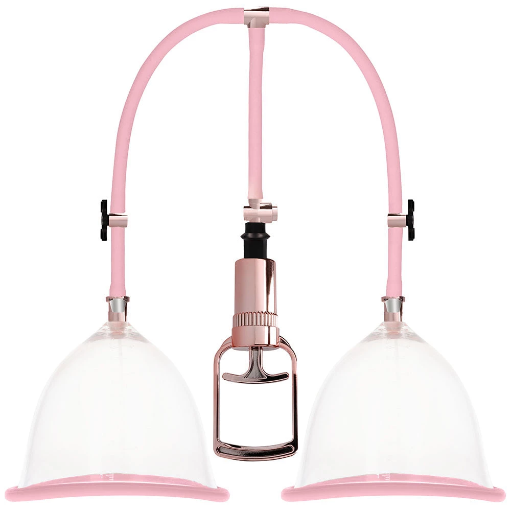 In extra sturdy acrylic, the Rose Gold Breast Pump Set’s two suction cups feature wide circular openings capable of fully surrounding your/your partner’s breasts and beyond. The cups are strategically crystal clear and 100% voyeur friendly – you’ll both be able to watch as suction takes hold.Â
