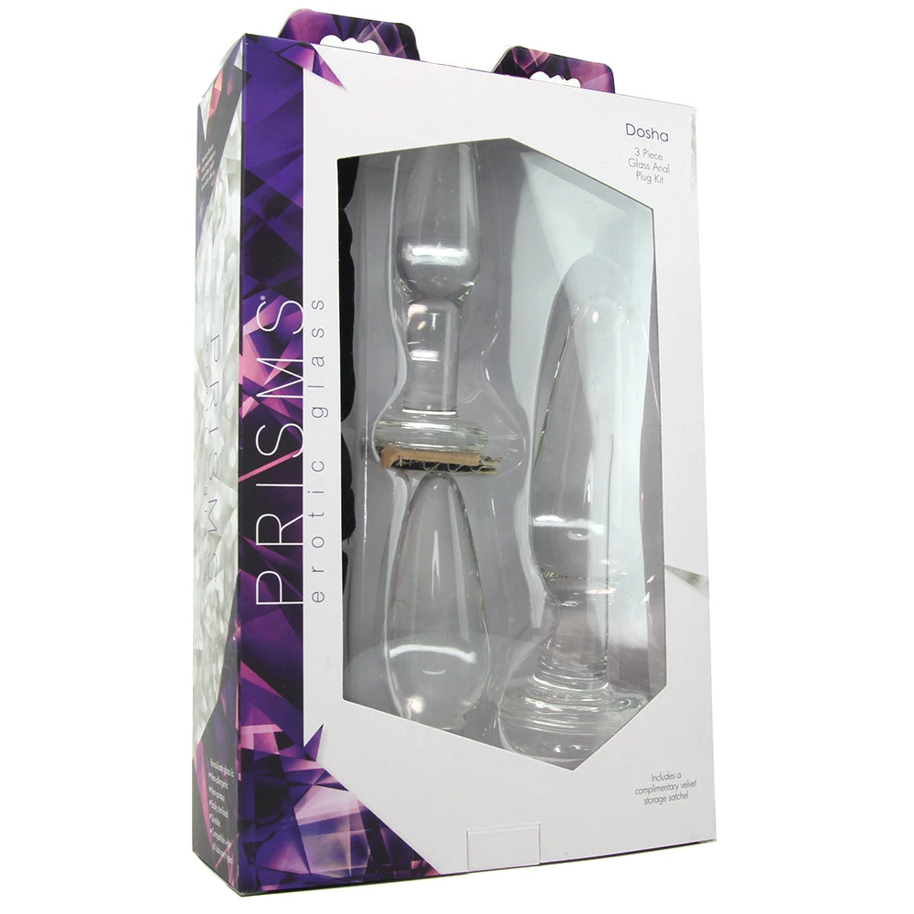 Combining three smooth glass Plugs into a versatile trio, the pleasurable Dosha set graduates gently in size from teasing to filling, making forcompletely customized anal play.